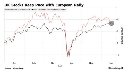据了解,仅石油巨头壳牌(SHEL.US)和英国石油(BP.US)两家公司就占据英国富时100指数约10%的权重。该英国基准股指近期不仅与欧洲大陆股市同步上涨,还于上周创下收盘历史新高。与瑞士相似,大型制药、消费品制造等防御性板块也占英国股市较大权重。