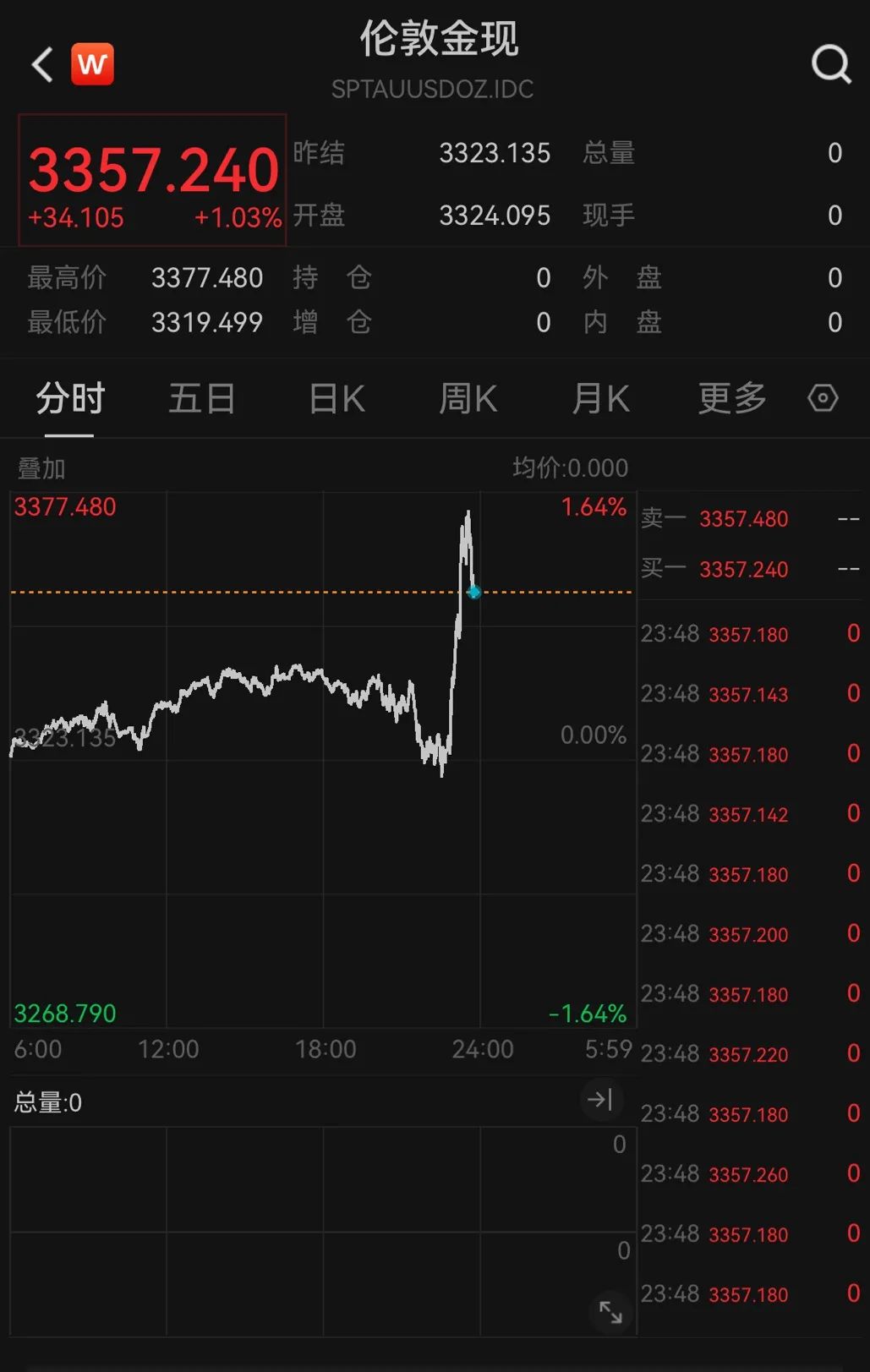 而受相关报道的影响,美国国债收益率下跌。现货黄金涨势不止,一度向上触及3370美元/盎司,截至发稿报3357.24美元/盎司。