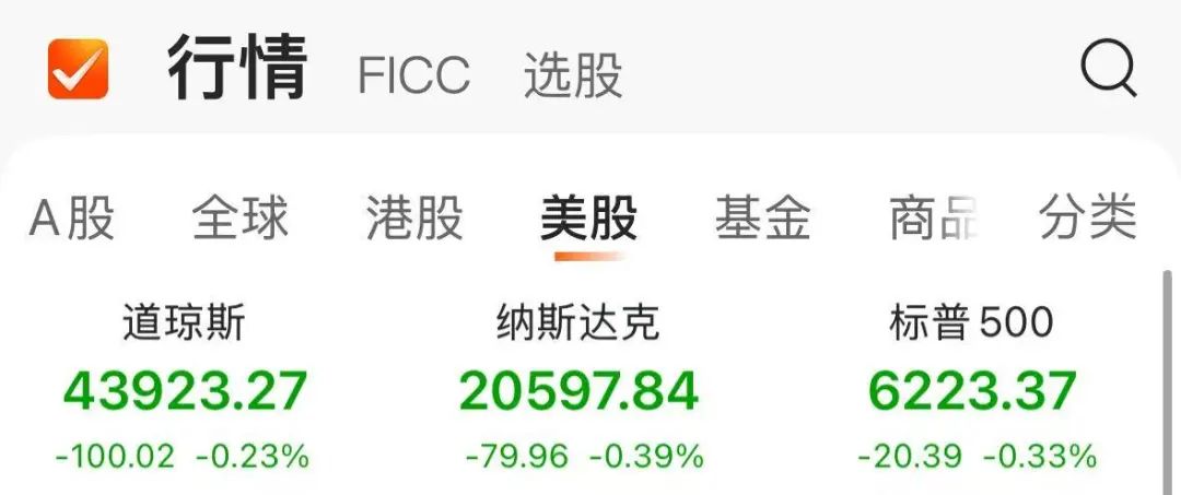 美股三大股指应声跳水,由涨转跌。截至发稿,道指下跌0.23%,纳指下跌0.39%,标普500指数下跌0.33%。